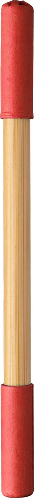 Endloser Bleistift und Kugelschreiber aus Bambus. Eine Seite mit endlosem Bleistift und die andere mit Kugelschreiber, beide mit farbigem Kartondeckel. Blaue Tinte.