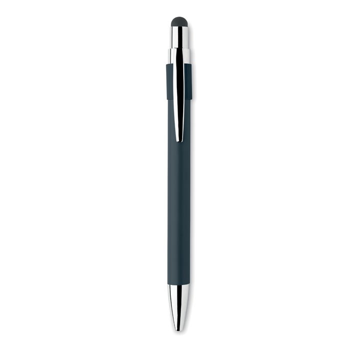 Druckkugelschreiber aus recyceltem Aluminium mit Stylus und Anti-Stress-Spinner-Funktion. Blaue Tinte.
