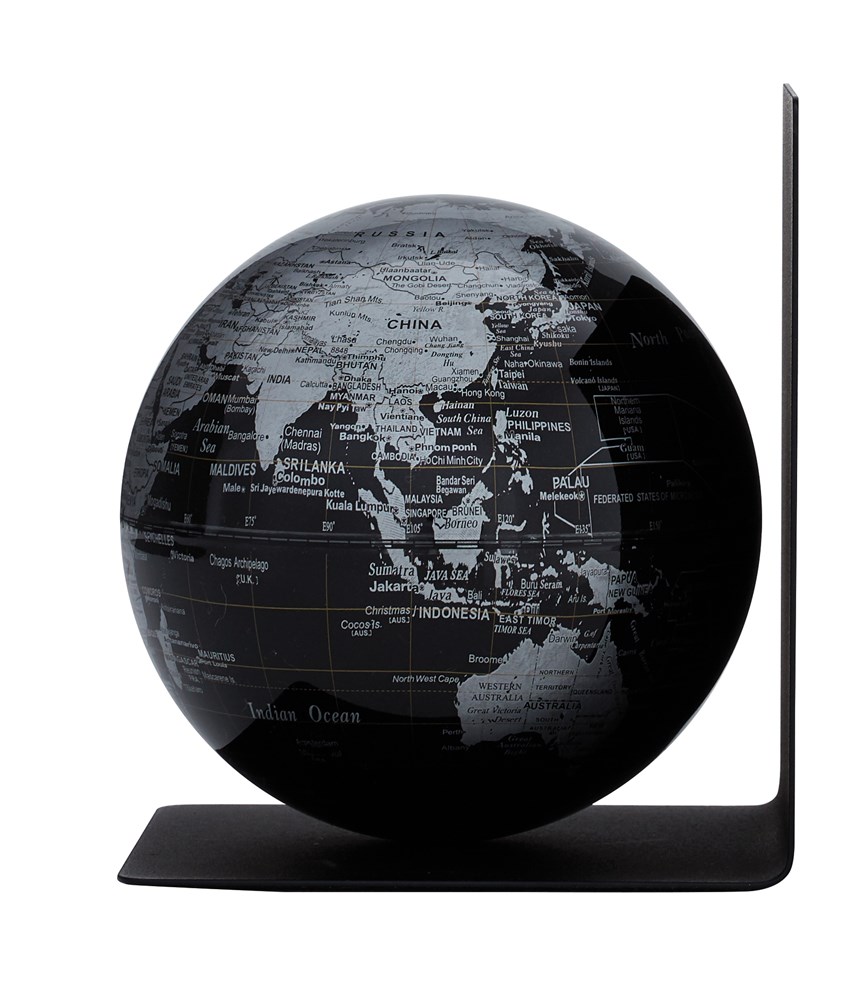 Globus mit Buchstütze aus Metall, magnetischer Globus mit 13 cm Durchmesser, Kunststoff, Metall, matt, schwarz/silberfarben