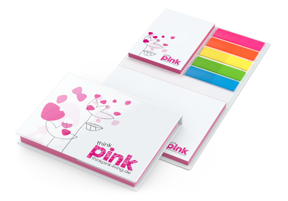 Das Kombi-Set Budapest besticht durch einen stilvollen Color-Farbschnitt und eine durchdachte Ausstattung. Mit zwei Haftnotiz-Blocks, einem farbigen Haftmarker-Set und einem individuell bedruckbaren Umschlag bietet es eine hochwertige Lösung für kreative und professionelle Werbekampagnen. • Format: 105 × 78 mm geschlossen; 105 × 169 mm offen • Ausstattung: Haftnotiz 100 × 72 mm, 50 Blatt Haftpapier weiß; Haftnotiz 50 × 72 mm, 50 Blatt Haftpapier weiß; Color-Farbschnitt: Kanten beider Haftnotiz-Blocks in einer Wunschfarbe nach CMYK; Haftmarker-Set (5 × 20 farbige Marker) • Umschlag: Bookcover individuell • Werbefläche: Haftnotizen und Umschlag (einseitig) • Druck: 4C-Quality inklusive