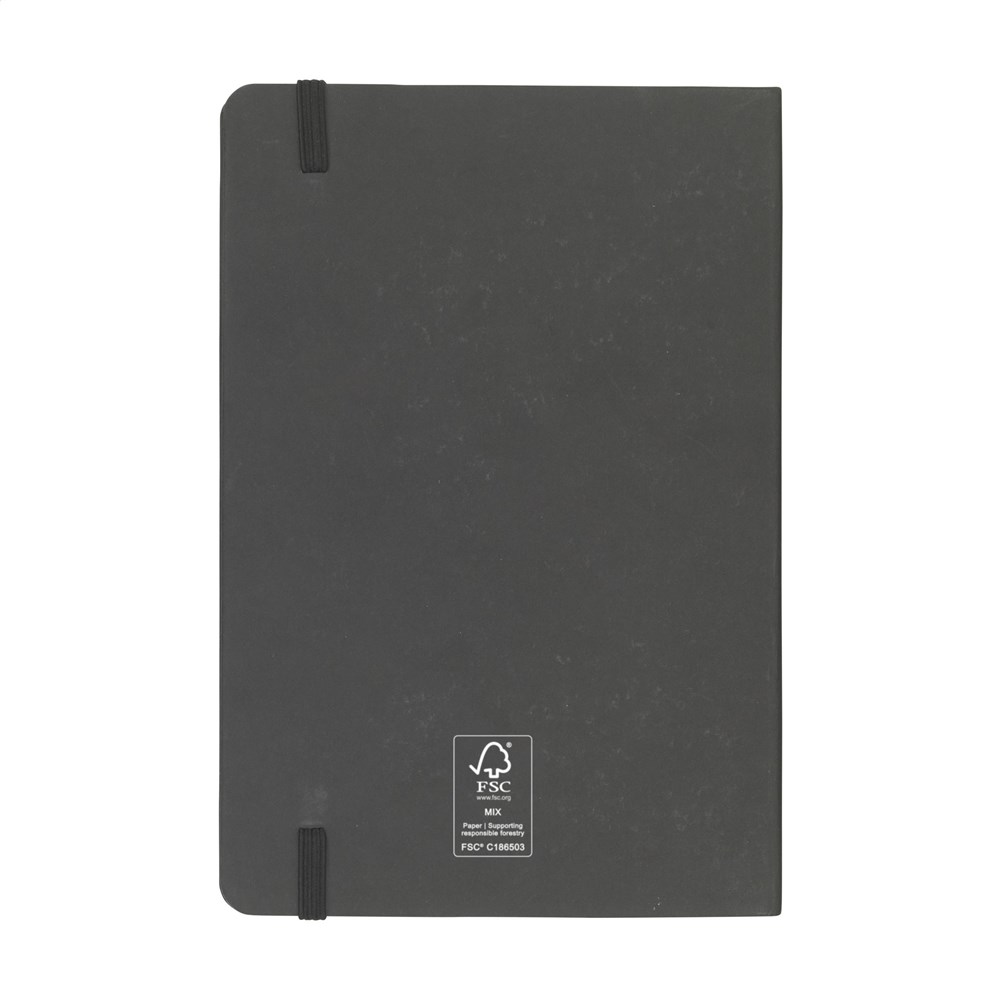 A5-Notizbuch mit Hardcover aus FSC Mix zertifiziertem Karton. Das Notizbuch umfasst ca. 80 Blatt/160 Seiten cremefarbenes, liniertes FSC Mix zertifiziertes Papier (70 g/m²). Mit gebundenem Buchrücken und praktischem Gummiverschluss.