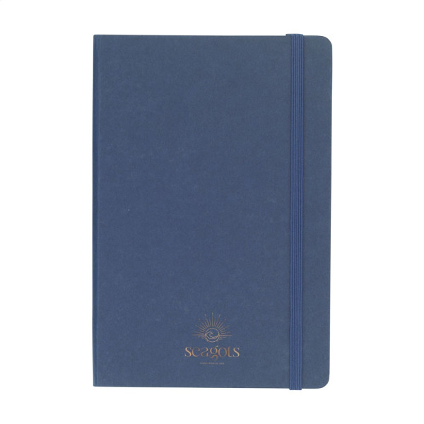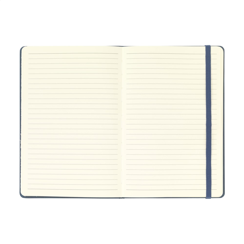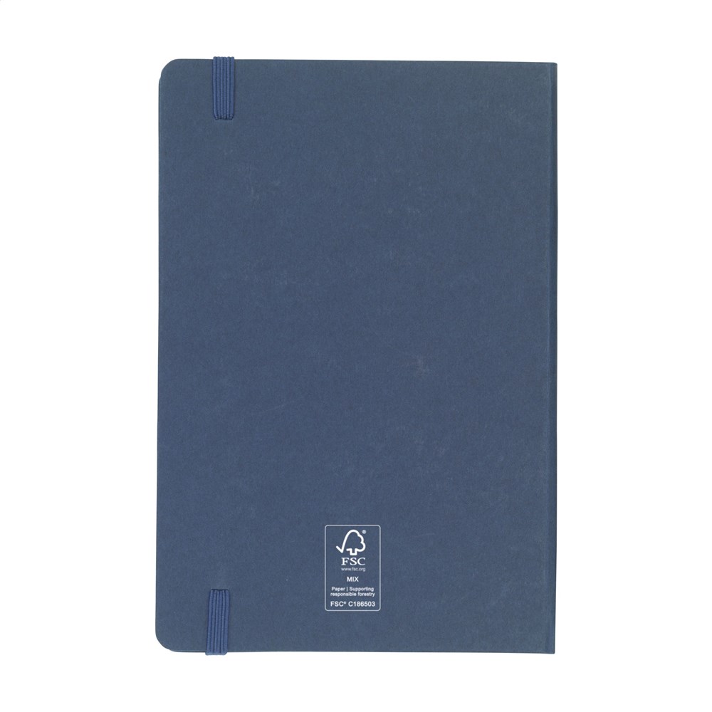 A5-Notizbuch mit Hardcover aus FSC Mix zertifiziertem Karton. Das Notizbuch umfasst ca. 80 Blatt/160 Seiten cremefarbenes, liniertes FSC Mix zertifiziertes Papier (70 g/m²). Mit gebundenem Buchrücken und praktischem Gummiverschluss.