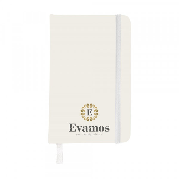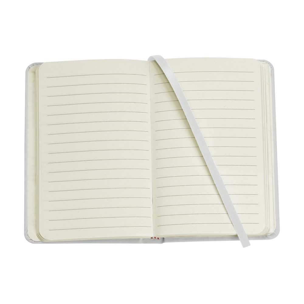 Kompaktes Notizbuch im A6-Format mit ca. 96 Blatt/192 Seiten crèmefarbenem, liniertem FSC Mix zertifiziertes Papier (80 g/m²). Mit gebundenem Rücken und hartem Umschlag, Aufbewahrfach, elastischem Band und seidener Leselitze.