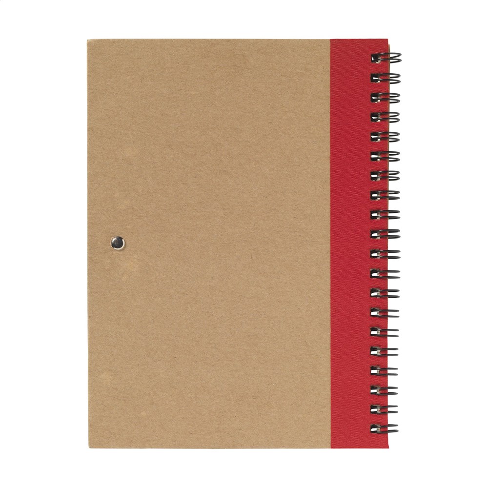 Notizbuch aus recyceltem Material mit ca. 70 Blatt/140 Seiten cremefarbenem, liniertem Papier (70 g/m²) und kartoniertem Umschlag. Gebunden in einer starken, metallenen Spiralbindung. Inkl. blauschreibendem Kugelschreiber. FSC Mix zertifiziert.