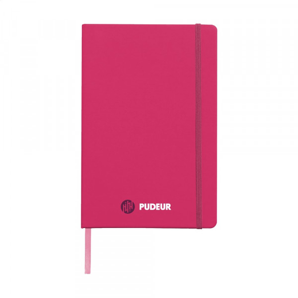 Notizbuch im A5-Format mit ca. 96 Blatt/192 Seiten crèmefarbenem, liniertem FSC Mix zertifiziertes Papier (80 g/m²). Mit gebundenem Rücken und hartem Umschlag, Verschlussgummi und seidener Leselitze.