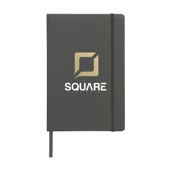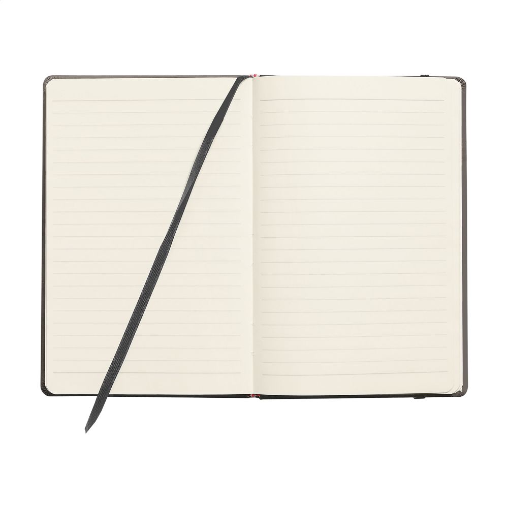Notizbuch im A5-Format mit ca. 96 Blatt/192 Seiten crèmefarbenem, liniertem FSC Mix zertifiziertes Papier (80 g/m²). Mit gebundenem Rücken und hartem Umschlag, Verschlussgummi und seidener Leselitze.