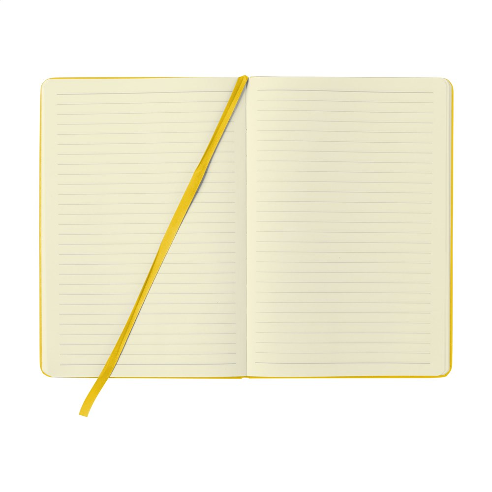 Praktisches Notizbuch im A5-Format. Mit festem PU-Überzug, ca. 80 Seiten cremefarbenem, liniertem FSC Mix zertifiziertes Papier (70 g/m²), elastischem Verschluss und Leseband.