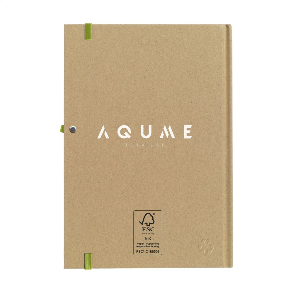 Notizbuch im A5-Format aus recyceltem Material. Mit ca. 80 Blatt/160 Seiten cremefarbenem, liniertem FSC Mix zertifiziertes Papier (70 g/m²), praktischem Stiftfach und elastischem Verschluss.