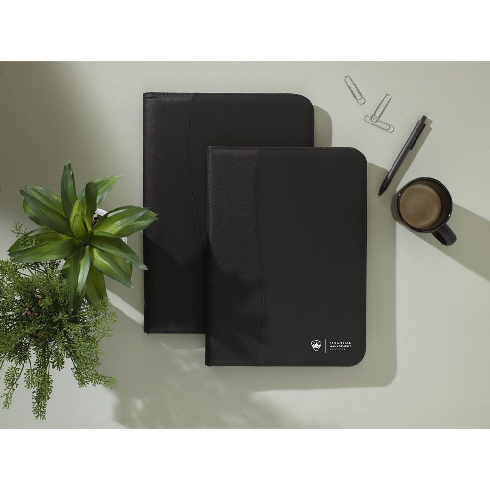 Schreibmappe mit mehreren Einsteckfächern. Inkl. Schreibblock und Kugelschreiber.