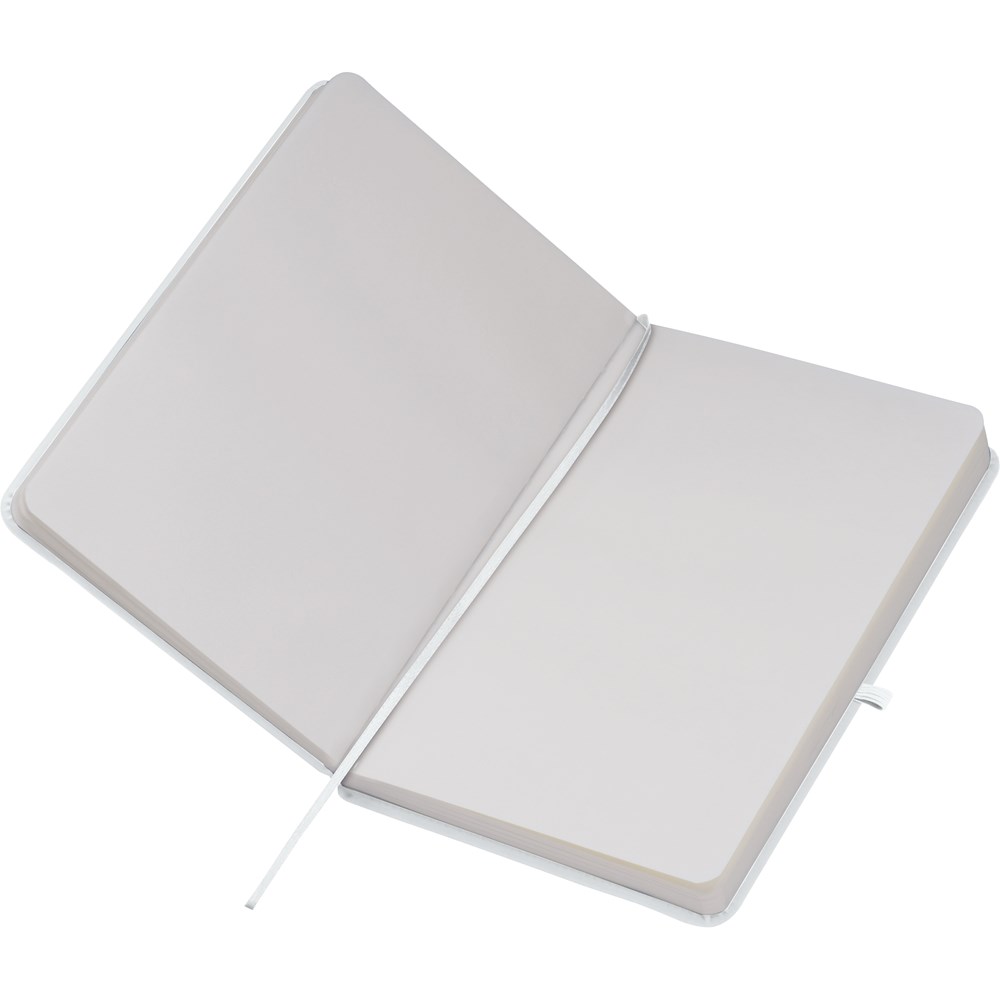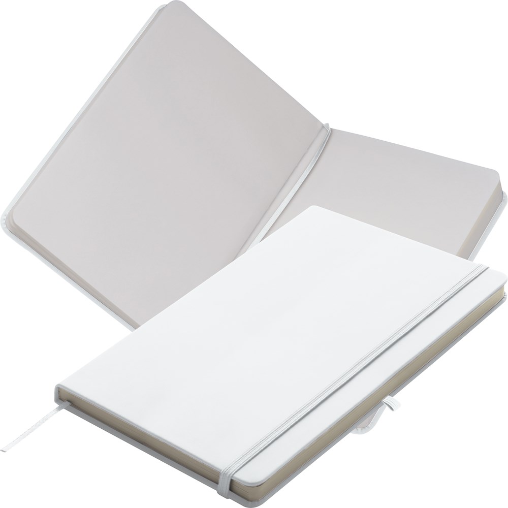 TOP PRICE! Notizbuch A5 im samtweichen PU-Einband, Kugelschreiberschlaufe, Lesezeichen, Gummiverschlussband und 160 Blankoseiten. Ihre Werbung drucken wir per Tampondruck auf das Cover.
