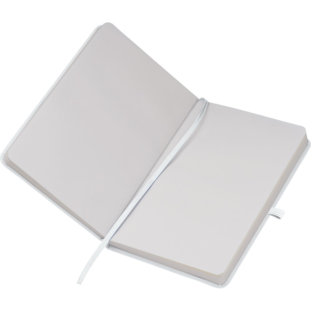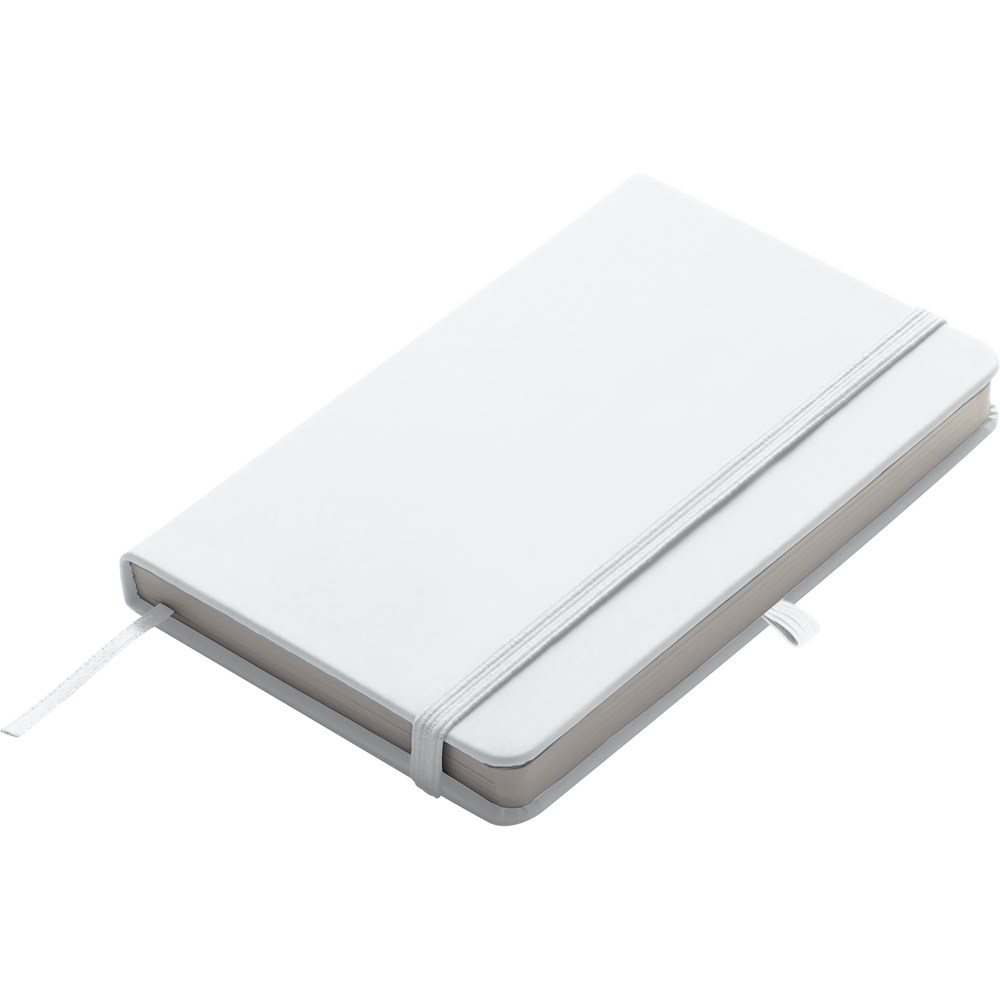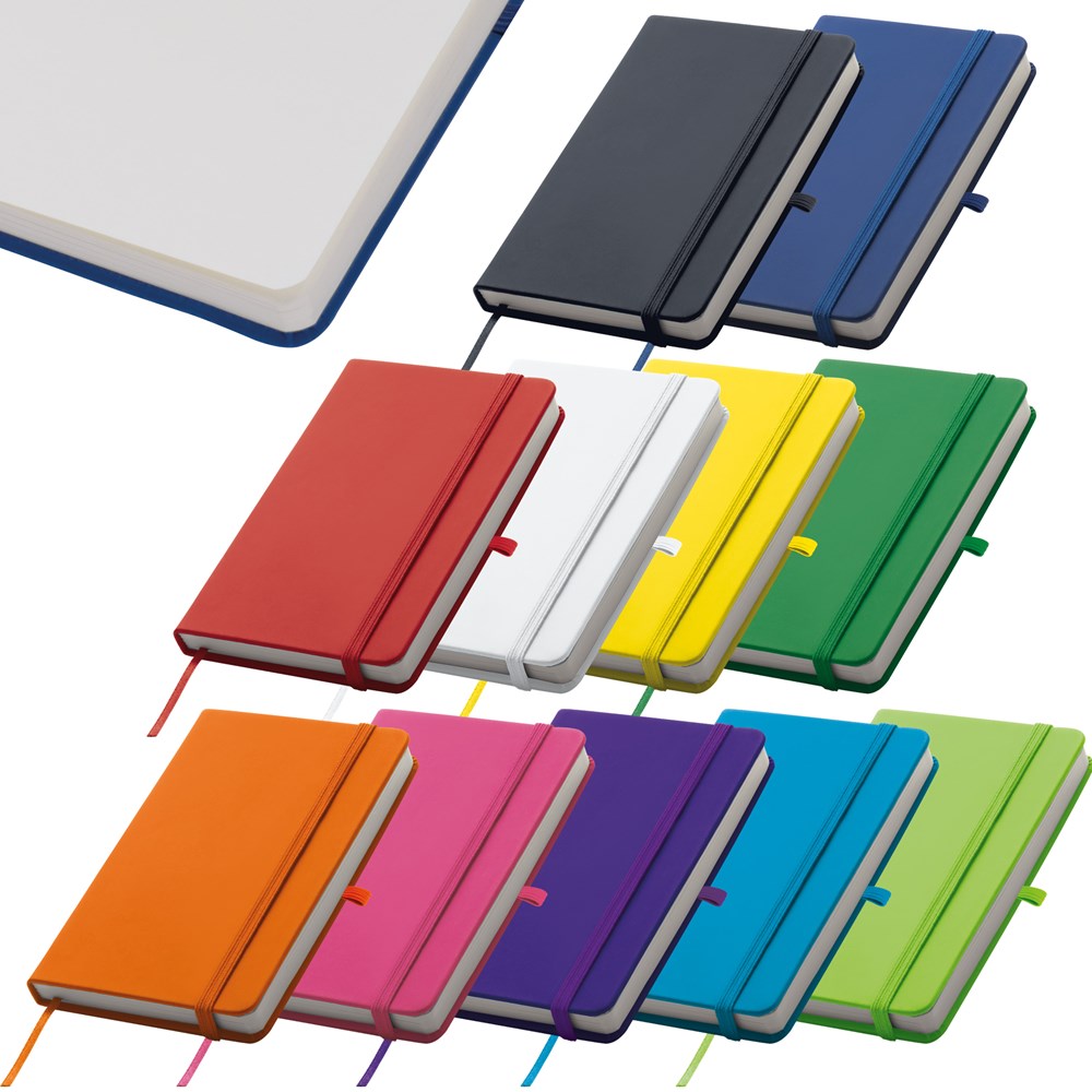 TOP PRICE! Notizbuch A6 im samtweichen PU-Einband, Kugelschreiberschlaufe, Lesezeichen, Gummiverschlussband und 190 Blankoseiten. Ihre Werbebotschaft drucken wir per Tampondruck auf das Cover.