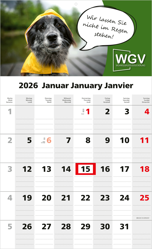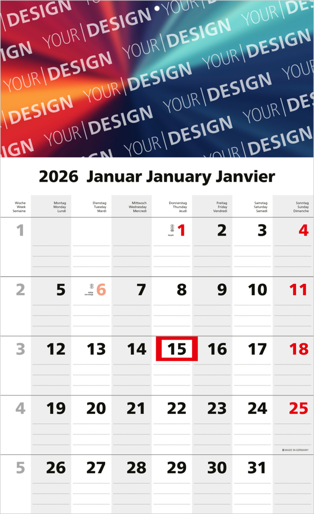 Der Solo 1 Bestseller überzeugt als praktischer 1-Monatskalender mit klarer Linienführung für Eintragungen und einer großzügigen Werbefläche. Perfekt geeignet für Unternehmen, die Wert auf hochwertige Werbemittel und Funktionalität legen.