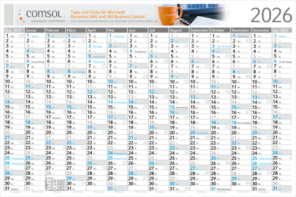 • Kalendarium: Deutsch 1sprachig; 14 Monate: Dez. – Jan.; Jahreszahl (anthrazit)