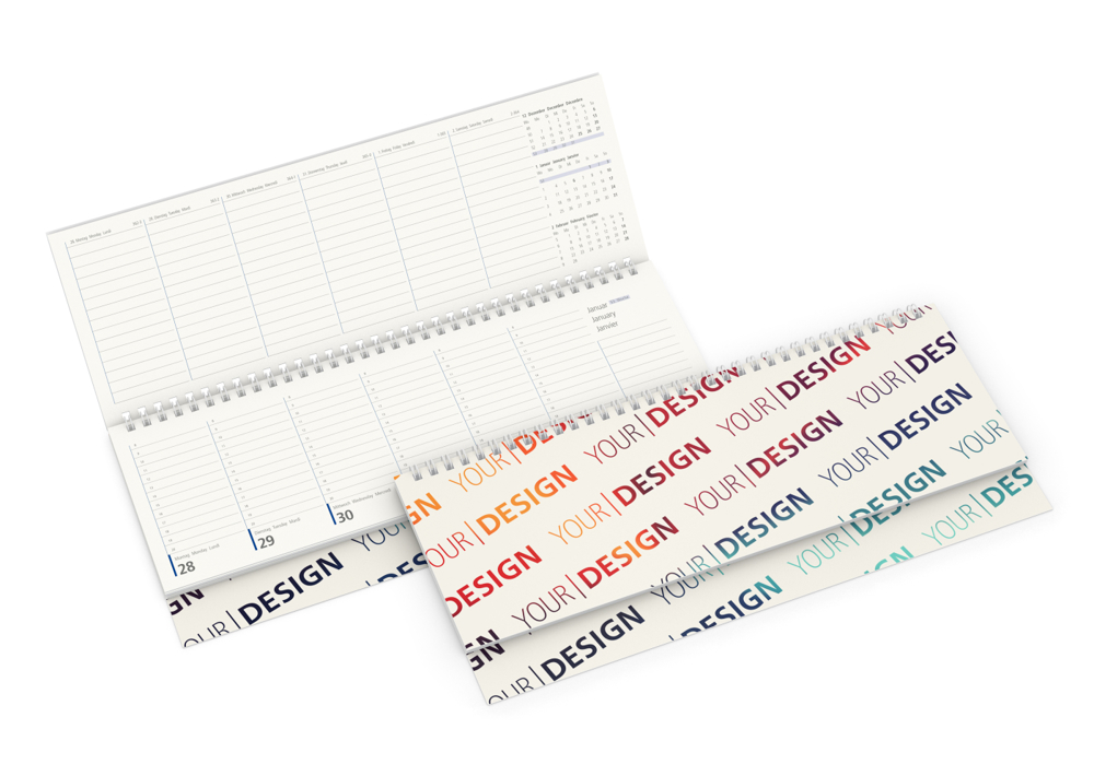 Der Compact green+blue ist die nachhaltige Variante des beliebten Tisch-Querkalenders. Mit seinem Kalendarium aus Recyclingpapier mit dem Umweltzeichen „Blauer Engel“ vereint er Funktionalität, Qualität und Umweltbewusstsein in einem praktischen Format. • Format: 304 × 105 mm Kalenderblock • Kalendarium: Deutsch 3sprachig D/GB/F; je Woche 2 Seiten; Stundeneinteilung von 8 bis 20 Uhr auf dem unteren Blatt; Notizraum und 3-Monats-Übersicht auf dem oberen Blatt; Informationsteil • Umfang: 112 Seiten • Verarbeitung: Wire-O-Bindung weiß • Einband: Recycling • Material: Recyclingpapier – hergestellt aus 100 % Altpapier mit dem Umweltzeichen „Blauer Engel“ • Werbefläche: kompletter Einband (Ober- und Unterdeckel) • Druck: 4C-Quality Digital inklusive