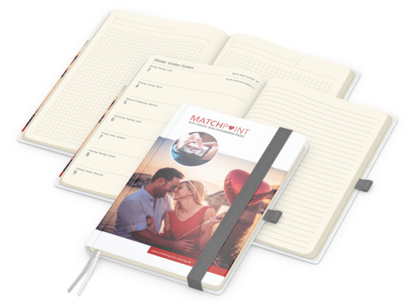 Der Hybrid-Wochentimer Match-Hybrid Creme Bestseller überzeugt durch Funktionalität, hochwertiges Design und die Möglichkeit zur individuellen Gestaltung. Dieser vielseitige Kalender ist die ideale Lösung für Unternehmen, die praktische Werbegeschenke mit einem hohen Nutzwert suchen.
