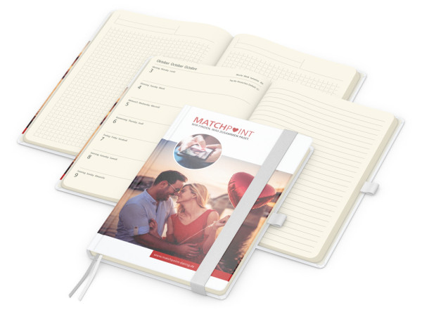 Der Hybrid-Wochentimer Match-Hybrid Creme Bestseller überzeugt durch Funktionalität, hochwertiges Design und die Möglichkeit zur individuellen Gestaltung. Dieser vielseitige Kalender ist die ideale Lösung für Unternehmen, die praktische Werbegeschenke mit einem hohen Nutzwert suchen.