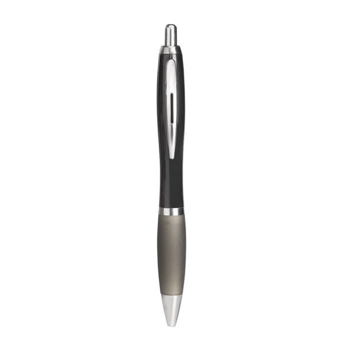 Druckkugelschreiber aus recyceltem ABS mit Softgriff. Schwarze Tinte.