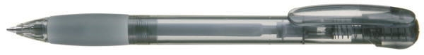 Druckkugelschreiber mit transparent glänzendem Gehäuse, Gummigriffzone und Clipdrücker. Stopfen... mehr