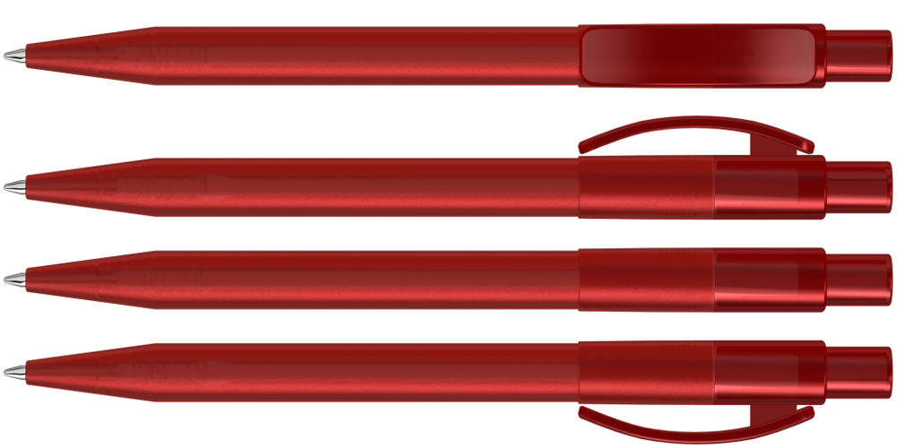 Druckkugelschreiber mit gefrostetem Gehäuse, glänzend transparentem Bogenclip und Drücker. mehr