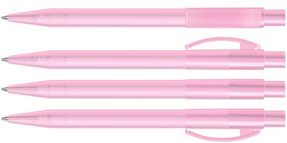 Druckkugelschreiber mit gefrostetem Gehäuse, glänzend transparentem Bogenclip und Drücker. mehr