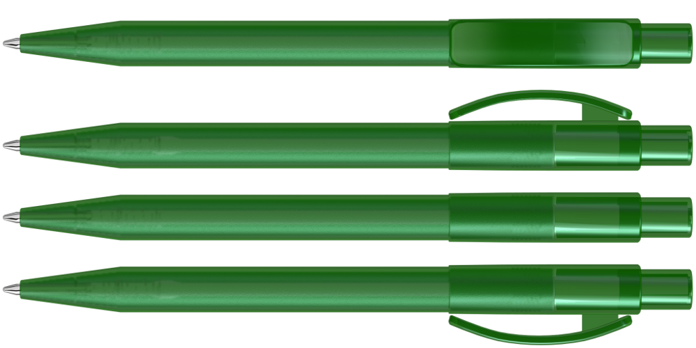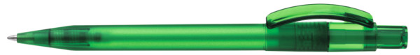 Druckkugelschreiber mit gefrostetem Gehäuse, glänzend transparentem Bogenclip und Drücker. mehr