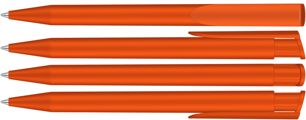 Druckkugelschreiber mit gedeckt mattem Gehäuse und Clipdrücker.