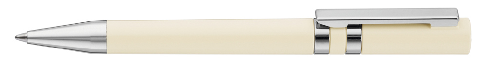 Drehkugelschreiber mit gedeckt glänzendem Gehäuse. Eingelassene Ringe, Stopfen im Oberteil,... mehr