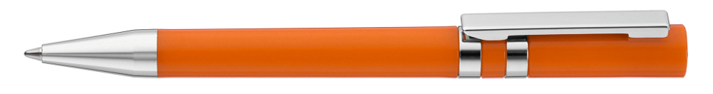 Drehkugelschreiber mit gedeckt glänzendem Gehäuse. Eingelassene Ringe, Stopfen im Oberteil,... mehr