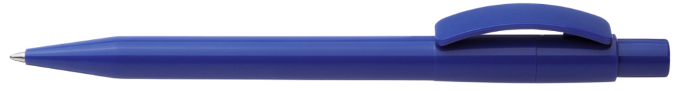 Druckkugelschreiber mit gedeckt glänzendem Gehäuse, Bogenclip und Drücker.