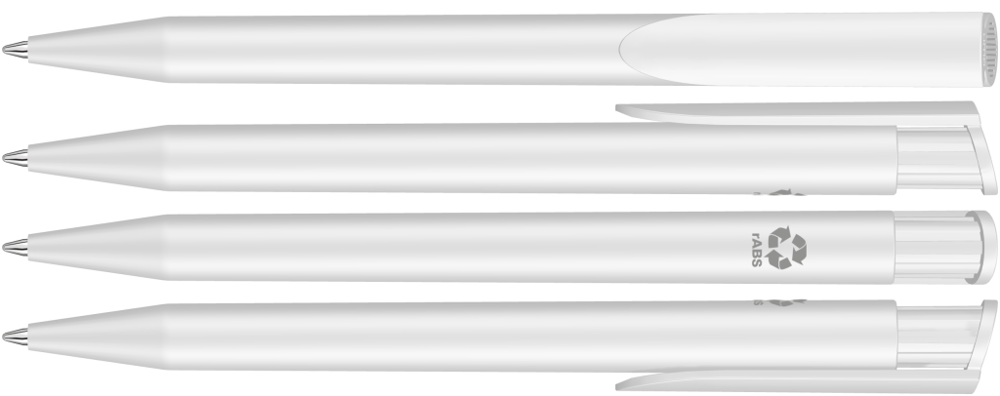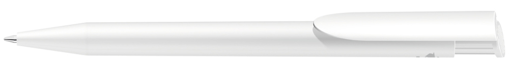 Druckkugelschreiber mit gedeckt mattem Gehäuse und Clipdrücker aus recyceltem Kunststoff.