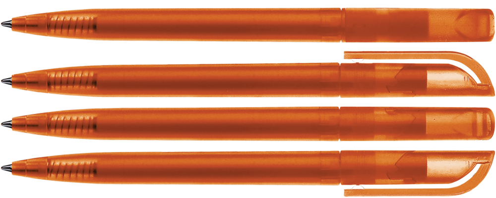 Drehkugelschreiber mit transparent gefrostetem Gehäuse.