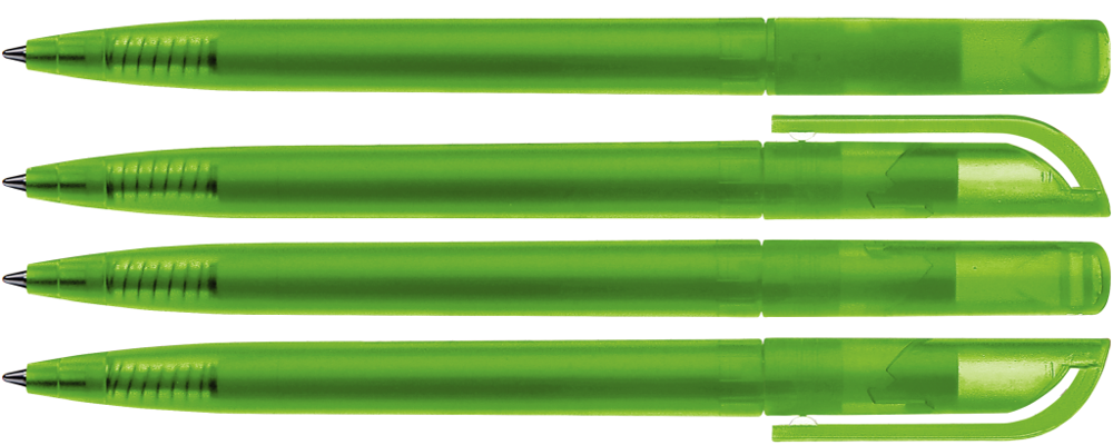 Drehkugelschreiber mit transparent gefrostetem Gehäuse.