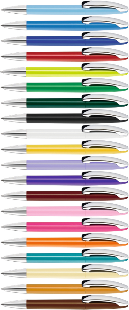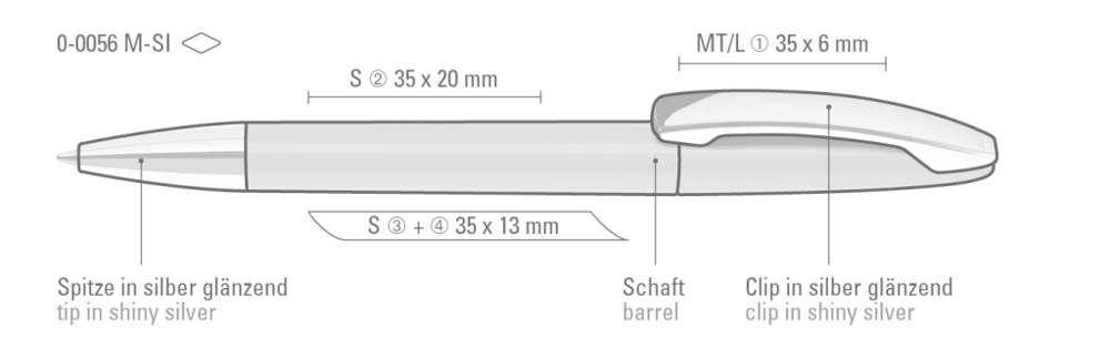 Drehkugelschreiber mit gedeckt glänzendem Gehäuse, Metallclip und Spitze glanzverchromt. mehr