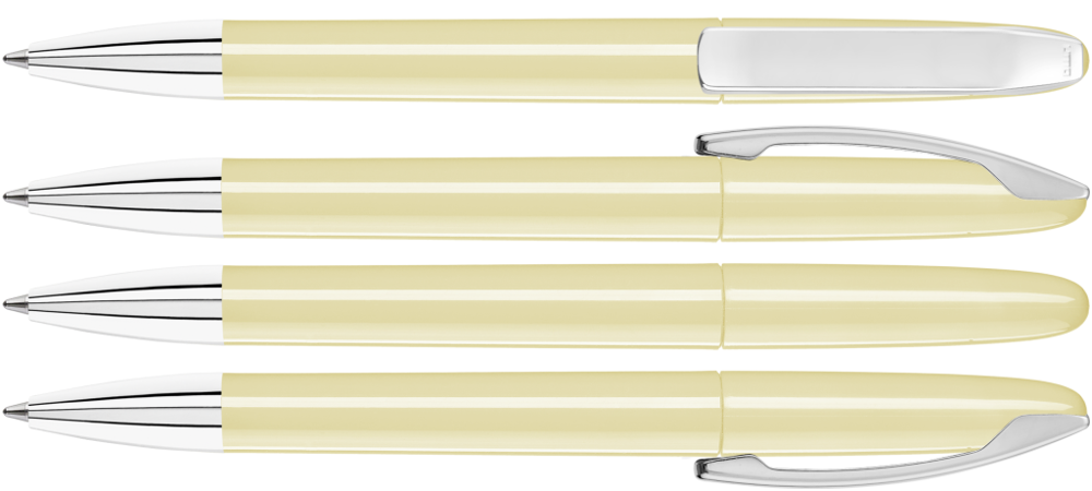 Drehkugelschreiber mit gedeckt glänzendem Gehäuse, Metallclip und Spitze glanzverchromt. mehr