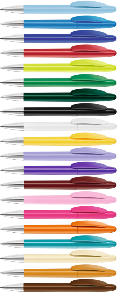 Drehkugelschreiber mit gedeckt glänzendem Gehäuse und Spitze glanzverchromt. mehr
