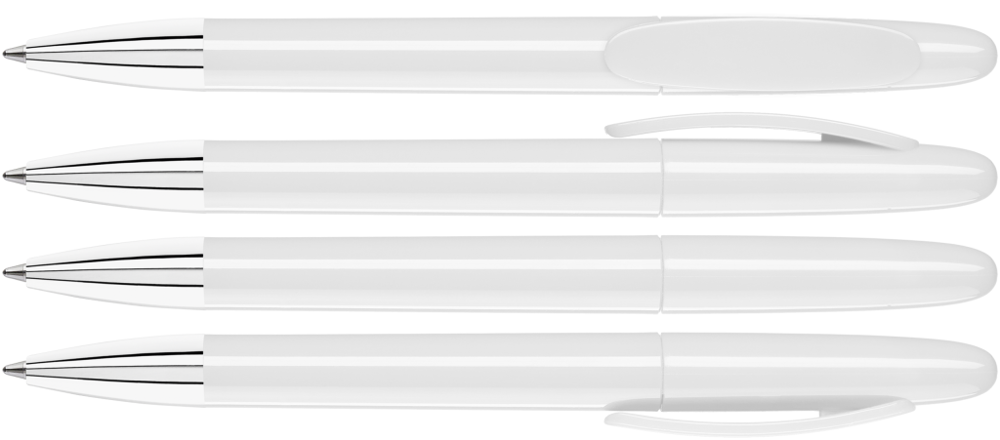 Drehkugelschreiber mit gedeckt glänzendem Gehäuse und Spitze glanzverchromt.
