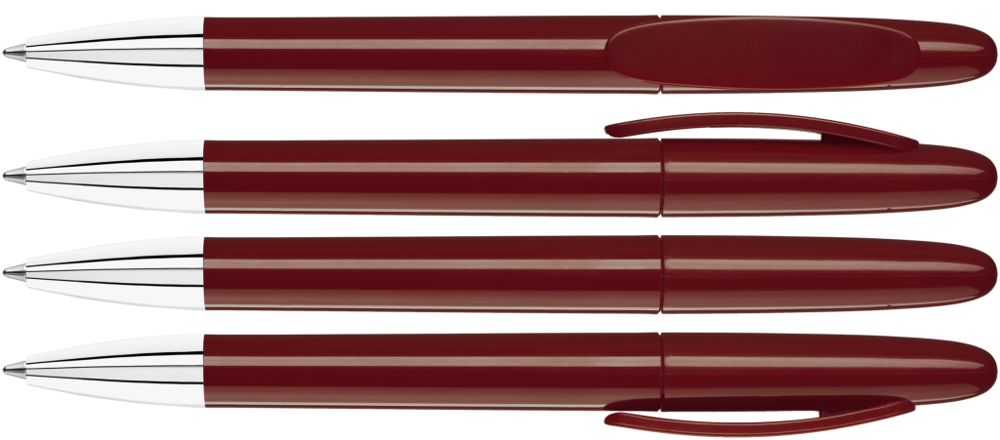 Drehkugelschreiber mit gedeckt glänzendem Gehäuse und Spitze glanzverchromt.