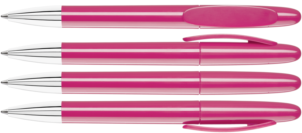 Drehkugelschreiber mit gedeckt glänzendem Gehäuse und Spitze glanzverchromt.