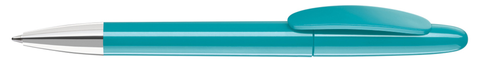 Drehkugelschreiber mit gedeckt glänzendem Gehäuse und Spitze glanzverchromt.
