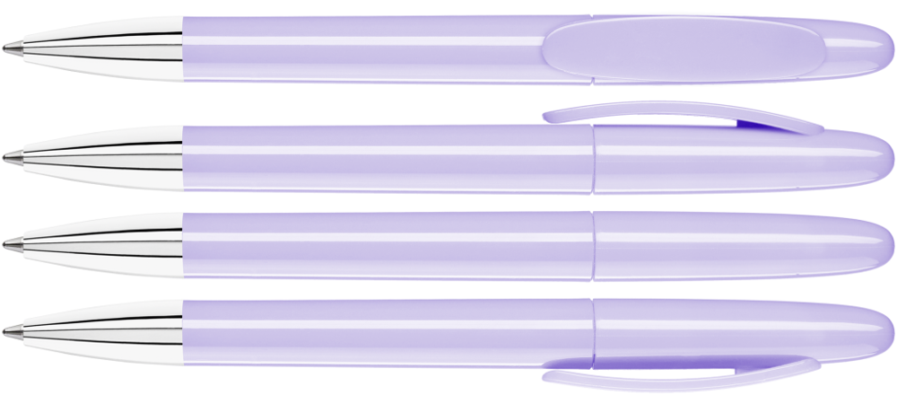 Drehkugelschreiber mit gedeckt glänzendem Gehäuse und Spitze glanzverchromt.