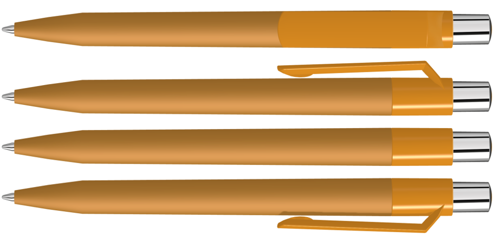 Druckkugelschreiber mit Softtouch-Schaft, gedeckt glänzendem Clip, silber glänzendem Drücker und farbigem Stopfen.