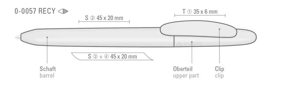 Drehkugelschreiber mit gedeckt mattem Gehäuse aus 100% recyceltem Post-Consumer-Kunststoff. mehr