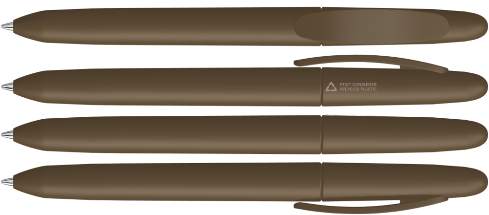 Drehkugelschreiber mit gedeckt mattem Gehäuse aus 100% recyceltem Post-Consumer-Kunststoff.