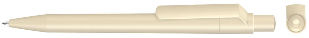 Druckkugelschreiber mit gedeckt mattem Gehäuse, Clip, Drücker und Stopfen.