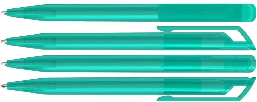 Drehkugelschreiber mit transparent glänzendem Gehäuse. mehr