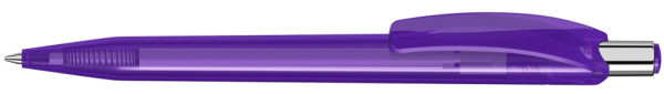 Druckkugelschreiber mit glänzend transparentem Gehäuse und Drückerstopfen. Drücker in silber glänzend.