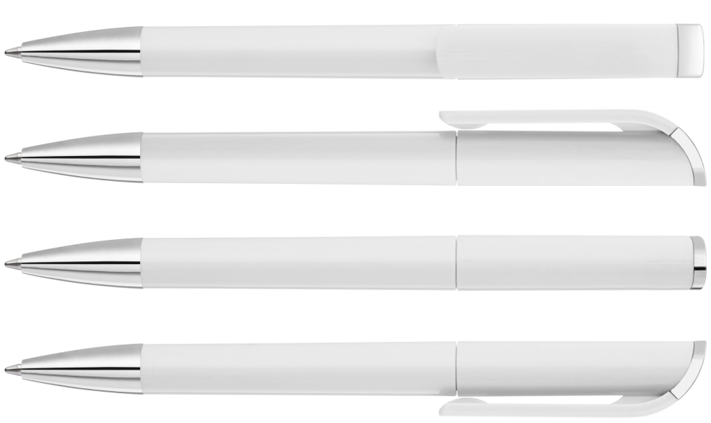 Drehkugelschreiber mit gedeckt glänzendem Gehäuse, Stopfen und Spitze glanzverchromt. mehr