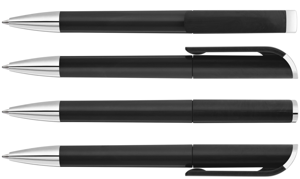 Drehkugelschreiber mit gedeckt glänzendem Gehäuse, Stopfen und Spitze glanzverchromt. mehr