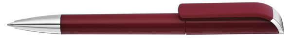 Drehkugelschreiber mit gedeckt glänzendem Gehäuse, Stopfen und Spitze glanzverchromt.