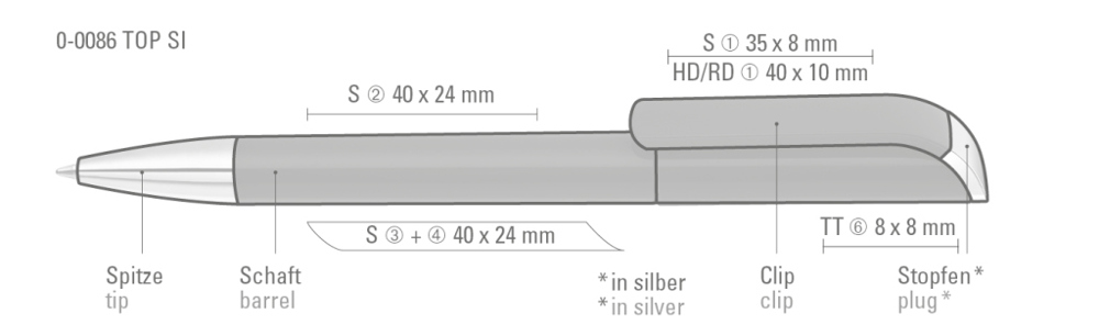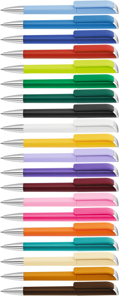Drehkugelschreiber mit gedeckt glänzendem Gehäuse, Stopfen und Spitze glanzverchromt. mehr